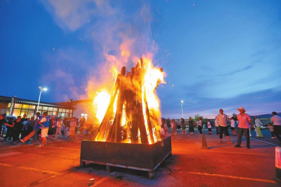 安寧縣街燃起熊熊篝火。 本報記者 陳飛 攝