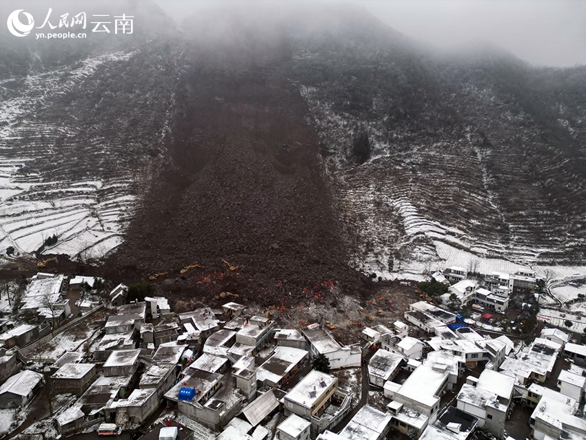 鎮雄縣“1·22”山體滑坡災害現場。人民網記者 程浩攝