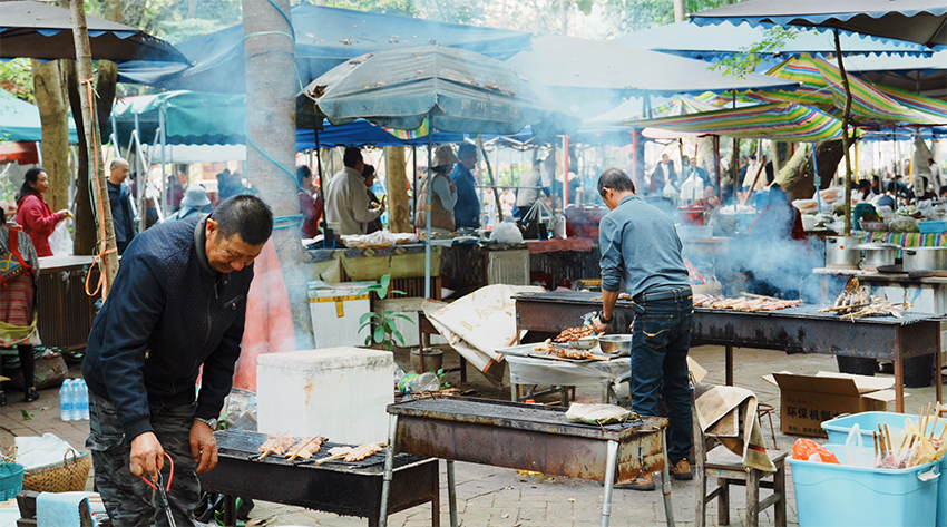 如今,它已從當地村民的傳統商貿社交活動,發展為融合民族特色、地方美食與深度文化體驗的文旅亮點,吸引著大量游客專程前來,成為感受西雙版納獨特風土人情的重要窗口。走進集市,扑面而來的是熱鬧的生活氣息與誘人的食物香氣。