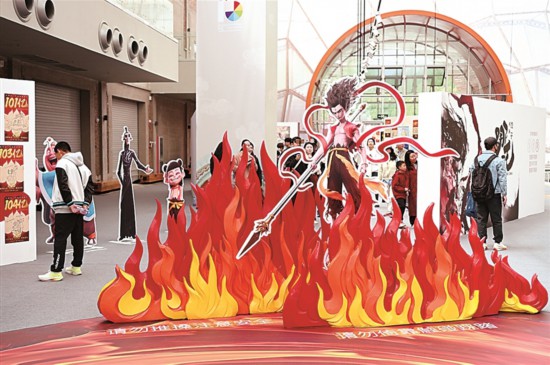 《哪吒之魔童鬧海》破億手繪海報展 新華社發