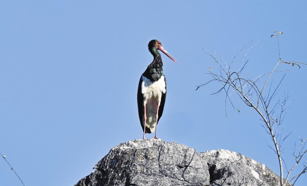 云南普者黑首次拍摄到黑鹳