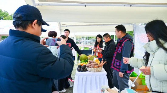 與此同時,賽場旁的展銷區熱鬧非凡。展銷組人員身著民族盛裝,手持本地特產,伴著歡快旋律載歌載舞,引得眾多上海市民和參賽選手駐足圍觀。其中,“江城黃牛”干巴、帕卡茶、燈籠果、佛手、丟包等特色產品備受追捧。短短3天,生鮮水果、茶葉銷售一空,展銷區不僅成為推廣江城特色產品的窗口,更搭建起文化交流的橋梁。