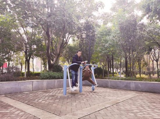 1月5日,市民在宾川县绿树成荫的明德公园锻炼。(张义红 摄)