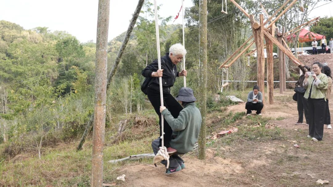 来自昆明的游客向女士表示:“我今天是第一次来丢包场,体验了特色秋千,感觉很刺激,我们玩得很开心。”